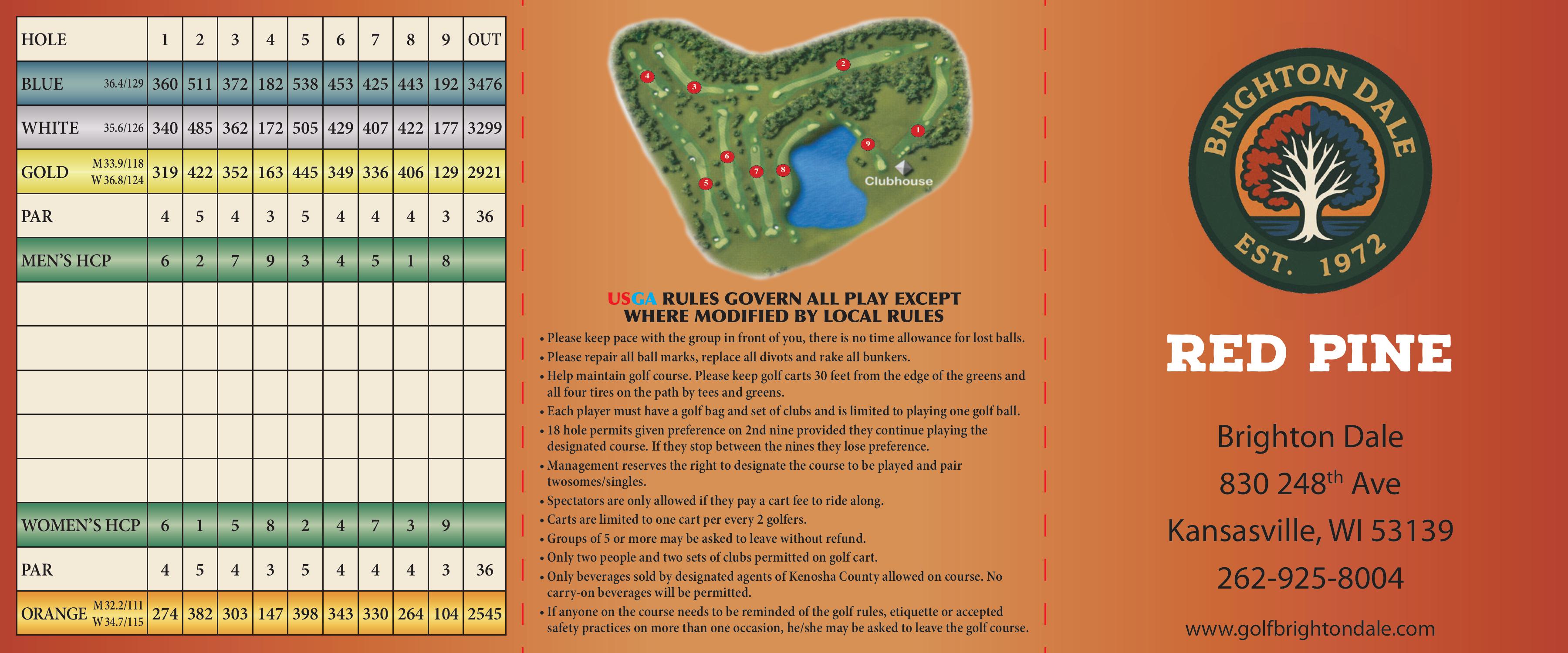Three separate tracts comprise the 45-hole Brighton Dale Links Complex. White Birch and Blue Spruce are 18-hole, par 72 layouts that measure 7,000 and 6,700 yards, respectively. Red Pine is a 9-hole, par 36 layout of 3,512 yards.